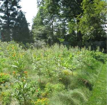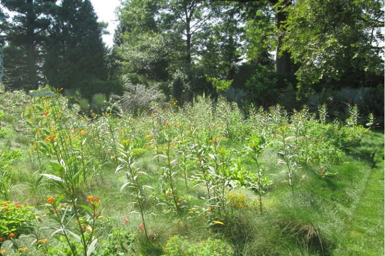 Plant it up with native grasses and wildflowers. Design is not important, it’s meant to be wild. Along with grasses, make sure to add a few plants like bee balm, mountain mint, rudbeckias and coneflowers because even carnivorous beetles like some nectar and a diversity of seeds in their diet.